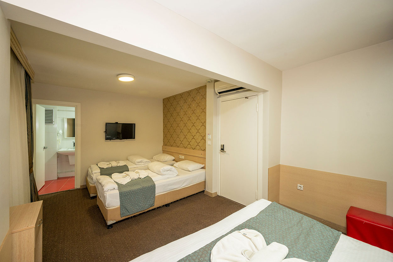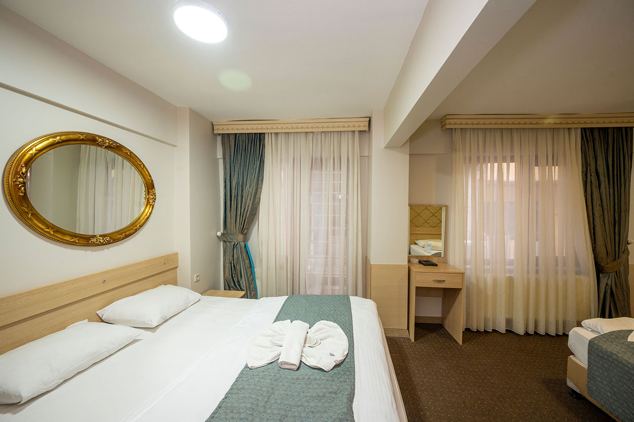 Doğal renklerle dekore edilmiş odalarımız, konforlu tek veya iki ayrı yatağımızla tüm ayrıntılar sizlerin rahatı için planlanmıştır.